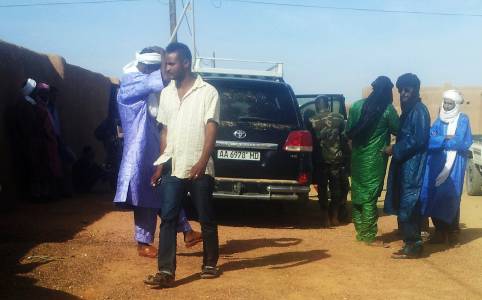 File photo of members of MINUSMA and MNLA inspecting the vehicle believed to have been ferrying two French journalists just after they were abducted in Kidal