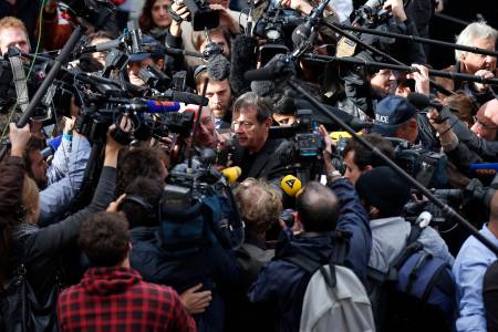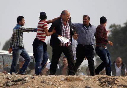 Supporters of the Muslim Brotherhood and ousted Egyptian President Mohamed Mursi chase after journalists, who they claim to be pro-army, in an attempt to get them to leave the area outside the police academy, where Mursi's trial took place, on the outskirts of Cairo, November 4, 2013. Mursi struck a defiant tone on the first day of his trial on Monday, chanting 'Down with military rule', and calling himself the country's only 'legitimate' president. Mursi, an Islamist who was toppled by the army in July after mass protests against him, appeared angry and interrupted the session repeatedly, prompting a judge to adjourn the case. REUTERS/Amr Abdallah Dalsh (EGYPT - Tags: POLITICS CIVIL UNREST)