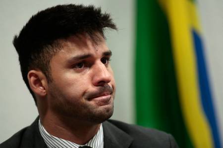 File photo of David Miranda looking on as journalist Glenn Greenwald testifies in Brasilia