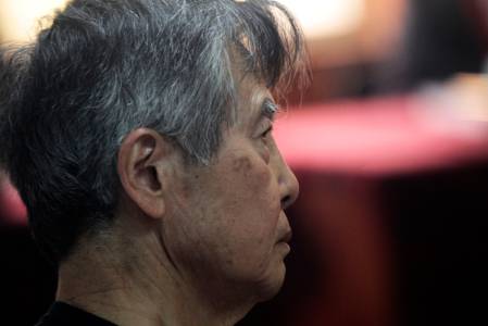 Peru's former President Alberto Fujimori attends a trial related to the used of the media during his tenure as president, in Lima