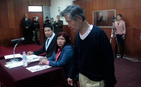 Peru's former President Alberto Fujimori arrives in court to attend a trial related to the used of the media during his tenure as president, in Lima