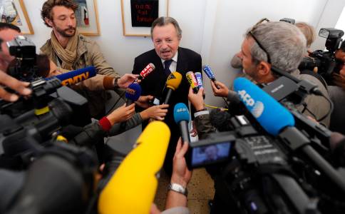 Bouches-du-Rhone General Council President Guerini is surrounded by the media during a news conference in Marseille