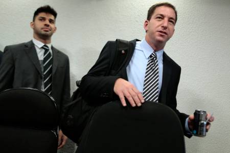 Glenn Greenwald, American journalist who first published the documents leaked by former NSA contractor Edward Snowden, testifies in front of the Brazilian Federal Senate's Parliamentary Inquiry Committee, established to investigate allegations of spying by United States on Brazil, in Brasilia October 9, 2013. REUTERS/Ueslei Marcelino (BRAZIL - Tags: POLITICS MEDIA)