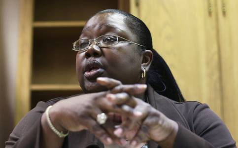 Corcoran State Prison warden Connie Gipson speaks to reporters gathered prior to a media tour of the facility in Corcoran, California October 1, 2013. The prison was the first in the state with a separate facility built for SHU (Secure Housing Unit) inmates, where some of the most dangerous prisoners are housed. Picture taken October 1, 2013. REUTERS/Robert Galbraith (UNITED STATES - Tags: CRIME LAW MEDIA SOCIETY)