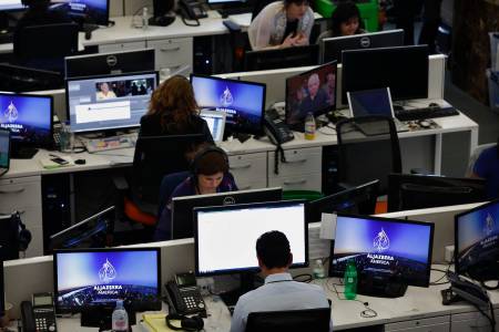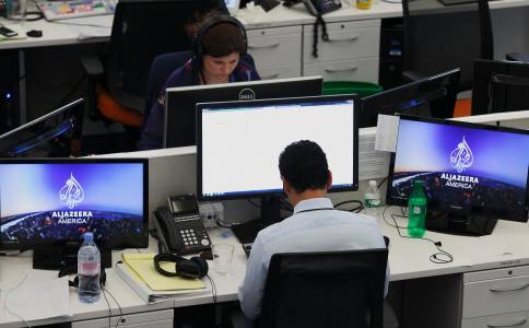 Journalists work in the newsroom at the Al Jazeera America broadcast center in New York