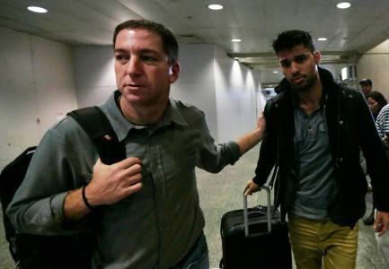 File photo of U.S. journalist Greenwald walking with his partner Miranda in Rio de Janeiro's International Airport