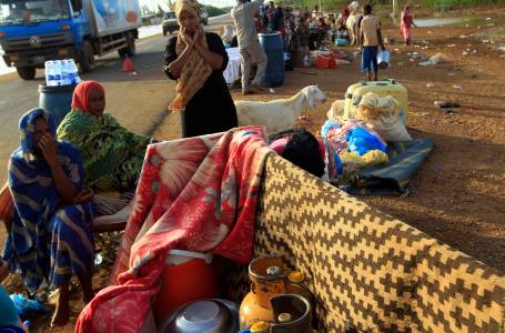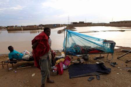 People, who are homeless after floods caused by heavy rains destroyed their homes, rest along a road in Khartoum