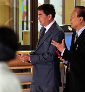 Former Thai Prime Minister Vejjajiva leaves Bangkok Criminal court, in Bangkok