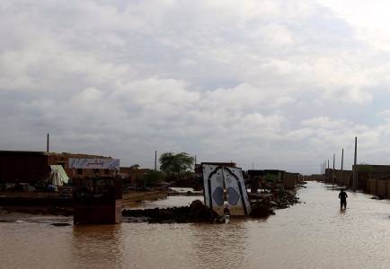A man walks past the remains of a house destroyed by the floods caused by heavy rains in Khartoum