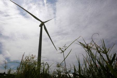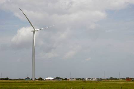 A wind turbine, the first of 88 installed at the Wind Power Park Eolico, is pictured in Penonome
