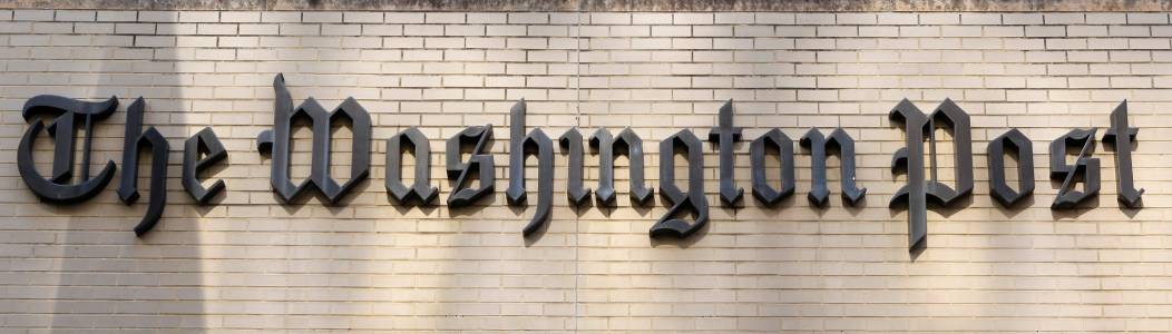 The sign above the entrance of the Washington Post headquarters is pictured in Washington