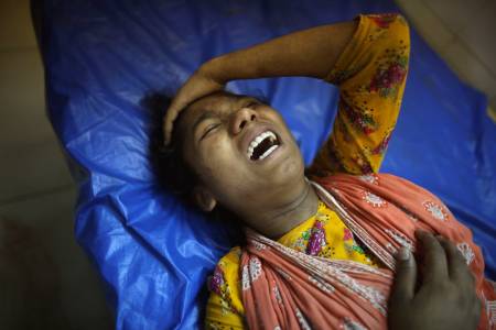 Rabeya, a garment worker, cries on a bed of Dhaka Medical College hospital after getting injured during a protest in Dhaka August 4, 2013. According to local media, hundreds of garment workers, mainly women, took to the streets on Sunday demanding for their salaries and bonuses before Eid al-fitr that they claimed their employers have failed to pay. REUTERS/Andrew Biraj (BANGLADESH - Tags: BUSINESS CIVIL UNREST EMPLOYMENT RELIGION)
