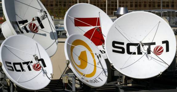 File photo of satellite dishes of Kabel 1 SAT 1 and Pro Sieben