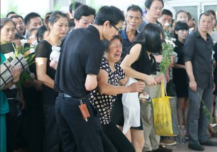 A woman is supported as she cries during a memorial for Liu Yipeng, Wang Linjia and Ye Mengyuan, the three victims of an Asiana Airlines crash, in Jiangshan, Zhejiang province, August 1, 2013. The remains of the three students from Jiangshan Middle School, who were killed when Asiana Airline Flight 214 crashed in San Francisco on July 6, arrived in Jiangshan early Monday morning, according to local media. REUTERS/Stringer (CHINA - Tags: DISASTER OBITUARY) CHINA OUT. NO COMMERCIAL OR EDITORIAL SALES IN CHINA