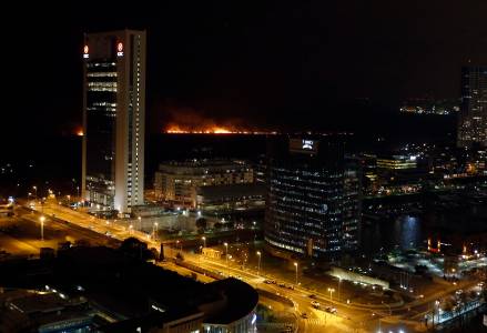Fire rages across the ecological reserve behind the Buenos Aires docks