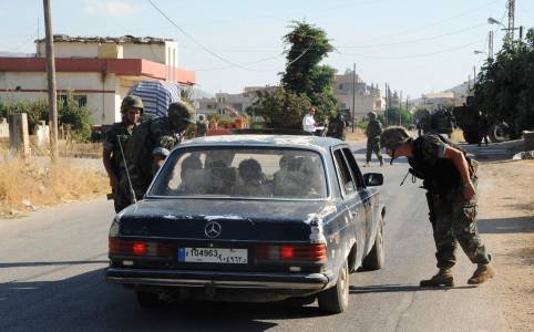 Lebanese army soldiers man a checkpoint in the town of Majdal Anjar