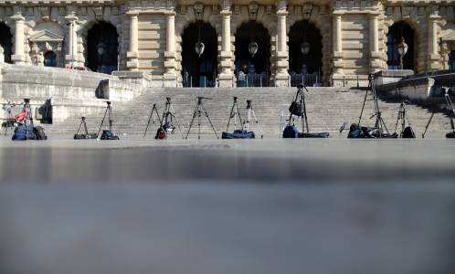 Reporters' tripods are left in position in front of Italy's supreme court building in Rome