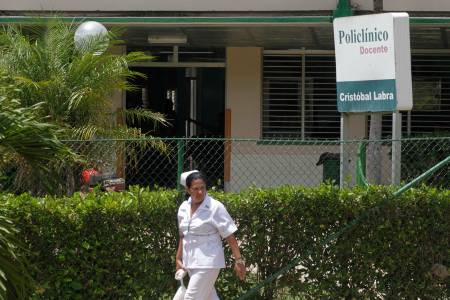 A nurse walks outside the Cristobal Labra health clinic, where according to local media, victims of an alcohol poisoning incident were first treated before being transferred to a hospital, in Havana July 31, 2013. Seven Cubans have died and more than 40 have been hospitalized, eight in critical condition, after drinking wood alcohol, or industrial methanol, they thought was rum, the public health ministry said on Wednesday. The poisoning happened in the La Lisa municipality of Havana, beginning on Monday, and all those killed were in their 40s and 50s, according to a list provided by the ministry. REUTERS/Enrique De La Osa (CUBA - Tags: HEALTH)