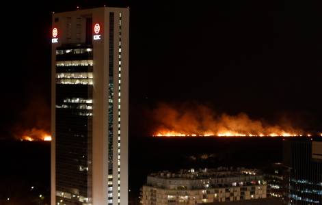 Fire rages across the ecological reserve behind the Buenos Aires docks