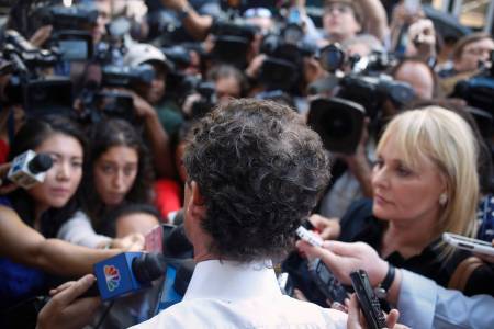 Former U.S. congressman from New York and current Democratic candidate for New York City Mayor Weiner speaks to the media after a campaign stop at the Nan Shan Senior Center, in the Queens borough of New York