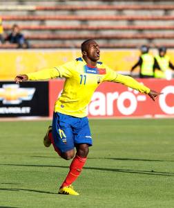 File photo of Ecuador's Christian Benitez celebrating after scoring a goal against Peru during their 2014 World Cup qualifying soccer match in Quito