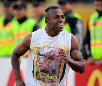 Ecuador's Christian Benitez celebrates after scoring against Jamaica during their friendly soccer match in Quito September 2, 2011. Ecuador international Benitez has died at the age of 27, his Qatari club El Jaish said on July 29, 2013 amid conflicting media reports about the cause of his death. Picture taken September 2, 2011. REUTERS/Guillermo Granja (ECUADOR - Tags: HEALTH OBITUARY SPORT SOCCER)