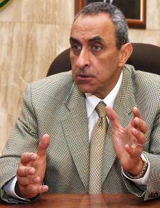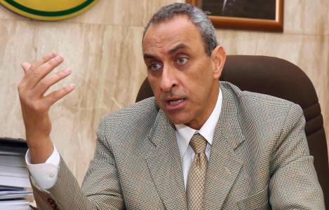 Ayman Farid Abu-Hadid, newly appointed minister of agriculture and land reclamation of Egypt's interim cabinet which was formed on July 16, 2013, speaks to media at his office in Cairo