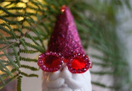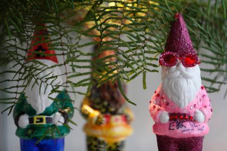 A decorated garden gnome designed by Elton John is seen during media day at the Chelsea Flower Show in London