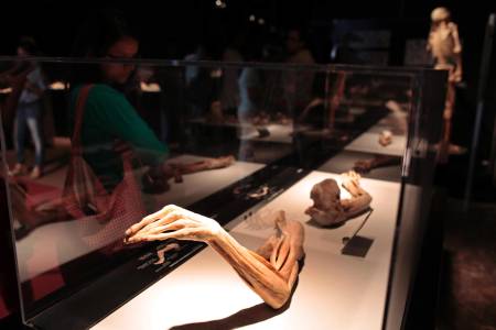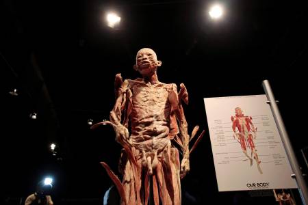 A plastinated human body, part of "The Human Body" exhibition, is seen during a media tour in Managua
