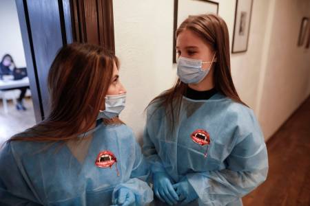 Doctors and nurses with fang stickers on their scrubs are offering free Pfizer shots to all-comers at 14th century Bran Castle