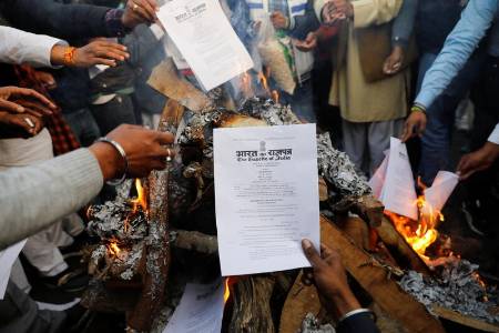 Tens of thousands of farmers are protesting against laws they say will benefit large private buyers at the expense of growers
