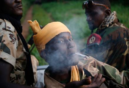 A Seleka fighter smokes during a patrol, close to the border of the Democratic Republic of Congo