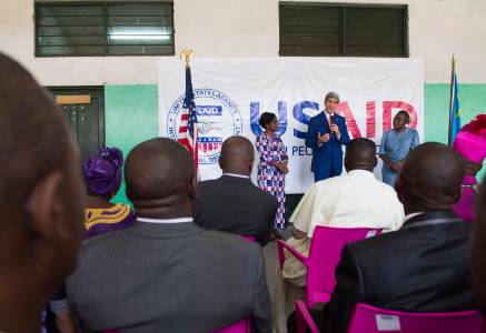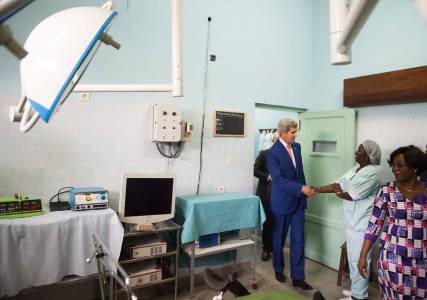 U.S. Secretary of State John Kerry visits Fistula Clinic at St. Joseph's Hospital, funded by USAID, in Kinshasa