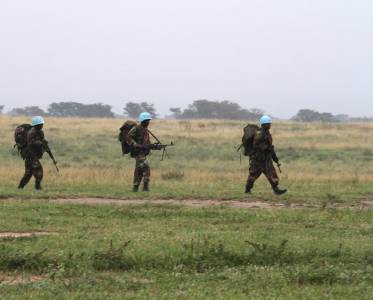 Soldiers from the United Nations intervention brigade perform a demonstration during a patrol in Virunga National Park in the Democratic Republic of Congo, December 17, 2013. REUTERS/Kenny Katombe (DEMOCRATIC REPUBLIC OF CONGO - Tags: CIVIL UNREST POLITICS MILITARY)