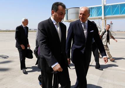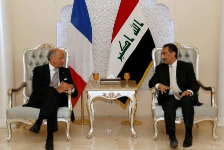 Iraq's Deputy Foreign Minister Nizar al-Khairallah meets with French Foreign Affairs Minister Laurent Fabius at Baghdad