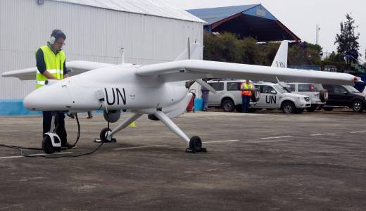 A technician checks a surveillance Unmanned Aerial Vehicles (UAV) drone operated by the United Nations in the Democratic Republic of Congo's eastern city of Goma December 3, 2013. United Nations forces in Democratic Republic of Congo launched unmanned aircraft on Tuesday to monitor the volatile border with Rwanda and Uganda, the first time U.N. peacekeepers have deployed surveillance drones. REUTERS/Kenny Katombe (DEMOCRATIC REPUBLIC OF CONGO - Tags: SOCIETY CIVIL UNREST CRIME LAW)