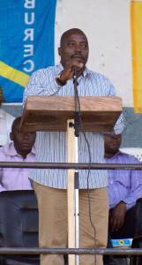 Kabila, President of the Democratic Republic of the Congo, makes a public address as he tours Rutshuru