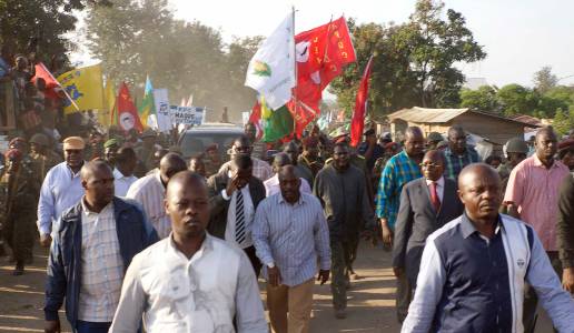 Kabila, President of the Democratic Republic of the Congo makes walks along a dusty street as he tours Rutshuru