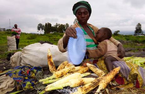 A Congolese woman roasts corn during celebrations for the victory of the government military forces over the M23 rebel fighters on the outskirts of the eastern town of Goma, November 7, 2013. Uganda is holding the military commander of Congo's defeated M23 rebel movement after he surrendered, a Ugandan officer said on Thursday, allaying fears that it could still take up arms again. Sultani Makenga's whereabouts had been unclear since Tuesday's declaration by the M23 that it was ending its 20-month-old insurgency in eastern Democratic Republic of Congo, worrying some that he could be hiding with plans to regroup. REUTERS/Kenny Katombe (DEMOCRATIC REPUBLIC OF CONGO - Tags: SOCIETY CIVIL UNREST POLITICS) TEMPLATE OUT