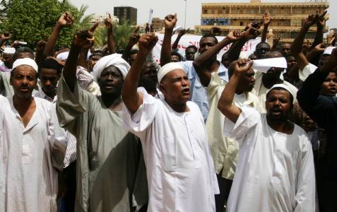 Muslim men shout during protest against Israel's military operation in Gaza Strip after Jumma prayer, in Khartoum July 18, 2014. REUTERS/Stringer (Sudan - Tags: CIVIL UNREST POLITICS RELIGION SOCIETY)