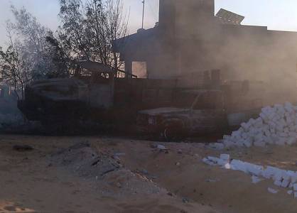 Damage is seen at a checkpoint on the Egyptian border with Sudan and Libya, which was attacked on Saturday, in Wadi al-Gadid governorate