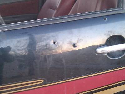 Bullet holes are seen in a car at a checkpoint on the Egyptian border with Sudan and Libya, which was attacked on Saturday, in Wadi al-Gadid governorate