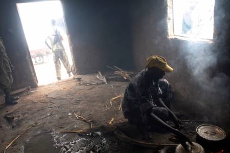 REFILE - ADDING BYLINE A soldier from Sudan People�s Liberation Army-In Opposition (SPLA-IO) prepares tea in a hut in Leer, Unity State, July 17, 2014. REUTERS/Andreea Campeanu (SOUTH SUDAN - Tags: CIVIL UNREST MILITARY)