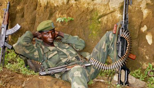 Congolese soldier takes a break while being deployed against the M23 rebels near Bunagana, north of Goma