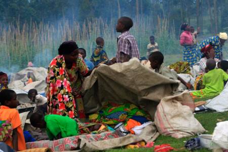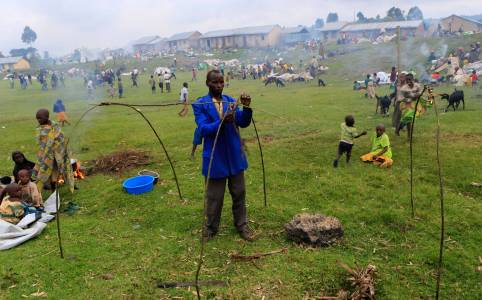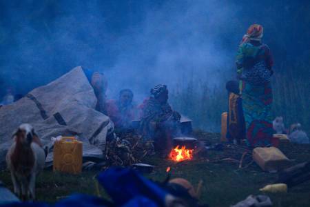 Families prepare dinner in a field in the Ugandan town of Bunagana
