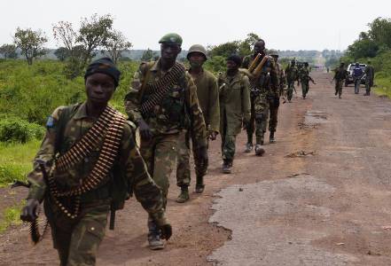 Congolese soldiers move to frontline positions as they advance against the M23 rebels in Kibumba, north of Goma October 27, 2013. REUTERS/Kenny Katombe (DEMOCRATIC REPUBLIC OF CONGO - Tags: MILITARY POLITICS CIVIL UNREST CONFLICT)