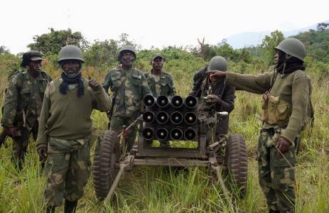 Rockets are fired from a Congolese army vehicle in the direction of M23 rebels in Kibumba, north of Goma October 27, 2013. REUTERS/Kenny Katombe (DEMOCRATIC REPUBLIC OF CONGO - Tags: MILITARY POLITICS CIVIL UNREST CONFLICT)