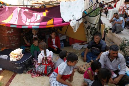 Syrian refugees, who fled the violence in Syria, are seen at a school that functions as a shelter for Syrian Kurdish refugees at Qushtapa