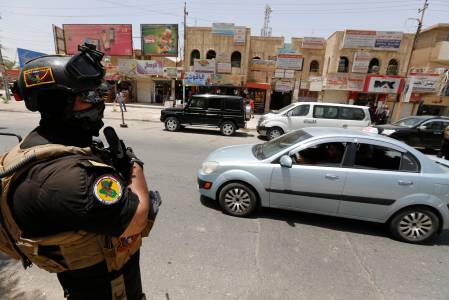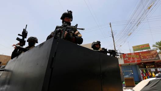 Members of the Iraqi Special Operations Forces stand guard during an intensive security deployment in Baghdad's Amiriya district, June 18, 2014. REUTERS/Thaier Al-Sudani (IRAQ - Tags: CIVIL UNREST POLITICS MILITARY) CONFLICT)