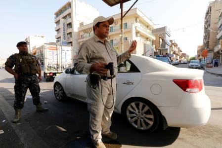 An Iraqi security personnel inspects a car using a scanning device at a checkpoint, as security increases in Baghdad, June 16, 2014. The United States is contemplating talks with its arch-enemy Iran to support the Iraqi government in its battle with Sunni Islamist insurgents who routed Baghdad's army and seized the north of the country in the past week. REUTERS/Thaier Al-Sudani (IRAQ - Tags: CIVIL UNREST POLITICS MILITARY CONFLICT)